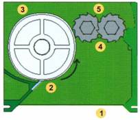 兩個反向旋轉的軸致使顆粒物在雙軸間被粉碎